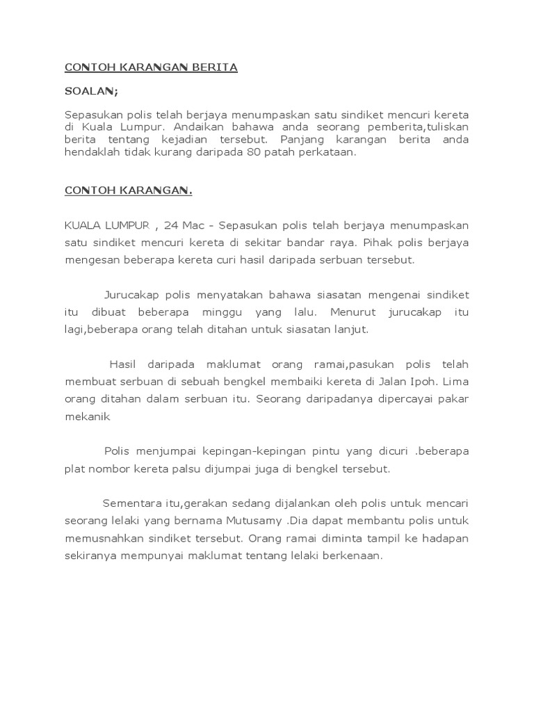 Contoh karangan berita tentang kemalangan jalan raya pmr.