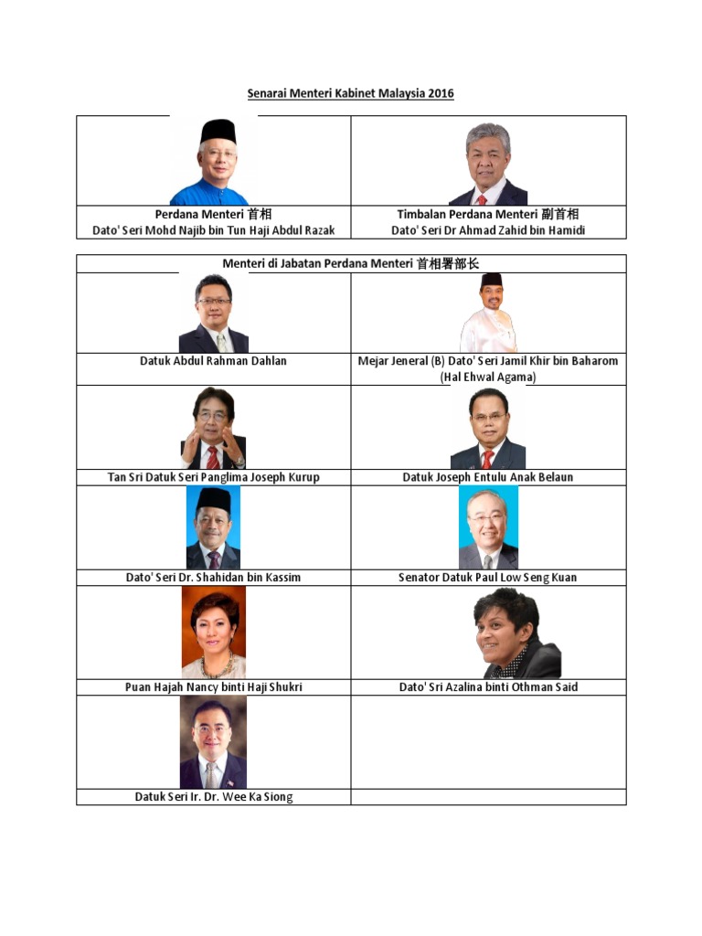 Senarai Nama Menteri Besar Dan Ketua Menteri Di Malaysia from imgv2-2-f.scribdassets.com The prime minister of malaysia (malay: Semalam, tanggal 10 mei 2018, tun dr. Menteri di jabatan perdana menteri (parlimen dan undang). Berikut dikongsikan senarai menteri kabinet malaysia bagi tahun 2020 di bawah kerajaan perikatan nasional (pn) pimpinan tan sri muhyiddin yassin. Tan sri dato' haji muhyiddin bin haji muhammad yassin. Terima kasih kerana membaca informasi berkaitan senarai menteri kabinet malaysia 2020 ini, semoga info yang dikongsikan ini bakal memberi manfaat kepada anda. Perdana menteri malaysia) is the head of government of malaysia. Menteri di jabatan perdana menteri datuk dr mujahid yusof.