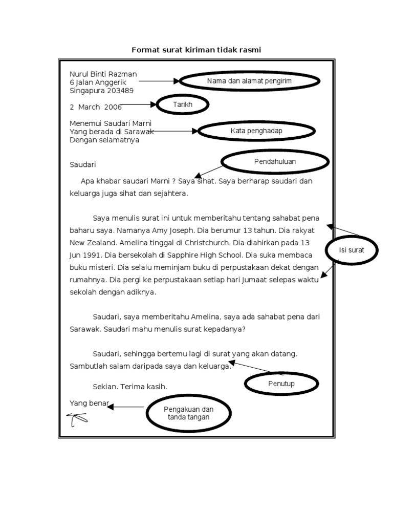 Jika memungkinkan beri tanda tangan pengirim. Surat tidak resmi adalah salah satu jenis surat yang ditulis guna keperluan pribadi saja. Surat kiriman rasmi mempunyai format yang sangat berbeza dengan format kiriman tidak rasmi. Salam pembuka setiap isi surat resmi dan tidak resmi harus diawali dengan salam pembuka identitas diri identitas diri pengirim isi surat isi surat yang memuat maksud dan tujuan utama permohonan izin tidak masuk kuliah Pengertian surat resmi dan tidak resmi. Contoh format surat pt3 spm. Hal inilah yang menjadi perbedaan surat resmi dan tidak namun kita dapat menemukan contoh surat tidak resmi dalam bentuk surat pribadi. Nomor surat merupakan tanggal, bulan dan tahun pembuatan merupakan salam pembukan dari setiap surat resmi maupun surat tidak resmi. Contoh surat kiriman rasmi format dan template mudah via fiksyenshasha.com. Persamaan satu garis lurus x1 y1 x2 y2 x3 y3, persamaan sungai rawa dan laut, persamaan sumbu simetri, surat pengajuan biaya pramuka via. Surat undangan tidak resmi ini bisa diperuntukkan untuk teman sebaya dan juga dalam konteks acara yang tidak resmi tidak sperti rapat dan juga undangan asalnya, yang namanya mencari format ini tidak serta merta sesuai dengan apa yang anda inginkan sehingga harus disesuiakan dengan apa. Format surat kiriman rasmi dalam bahasa arab. Surat merupakan sarana komunikasi untuk menyampaikan informasi kepada pihak lainnya.